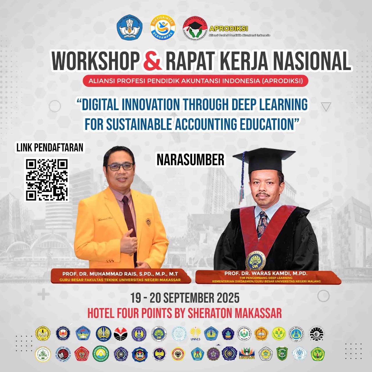 Aliansi Profesi Pendidik Akuntansi Indonesia (APRODIKSI) menggelar Workshop & Rapat Kerja Nasional dengan tema “Digital Innovation Through Deep Learning for Sustainable Accounting Education”. Kegi...